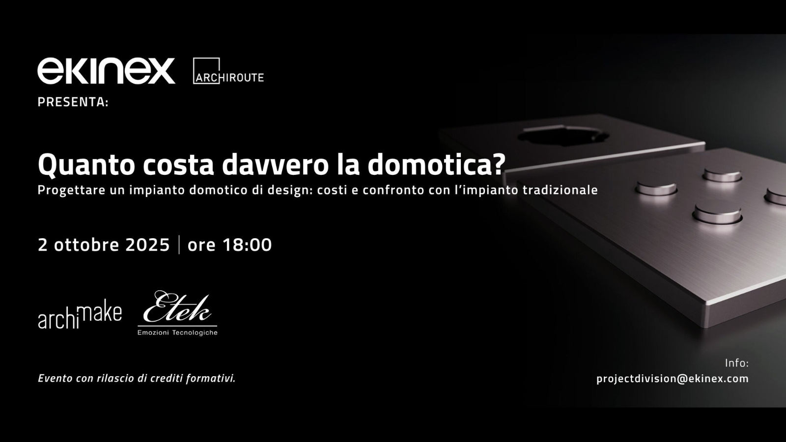 “Quanto costa davvero la domotica? Progettare un impianto domotico di design: costi e confronto con l’impianto tradizionale” presso Archimake, in collaborazione con Etek – emozioni tecnologiche.